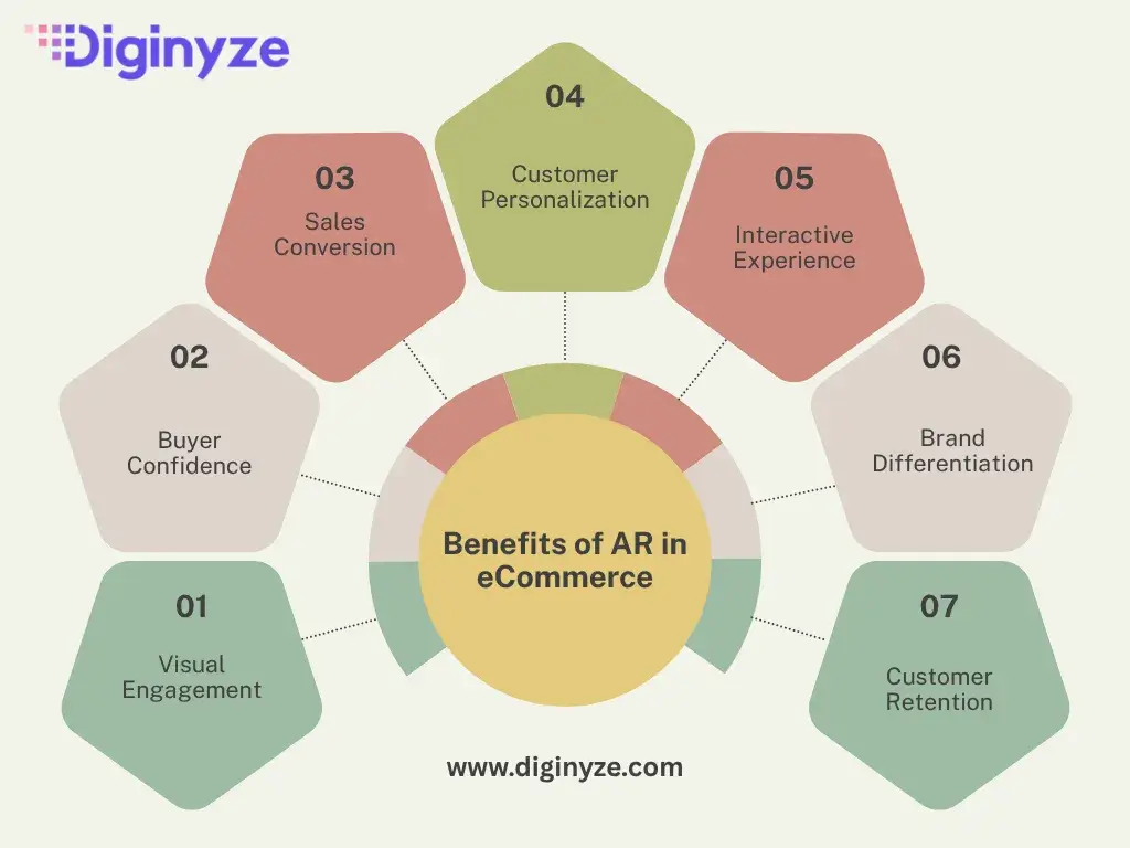 eCommerce businesses can implement AR by integrating platforms like Diginyze, an AI-powered eCommerce solution that offers easy-to-use AR features for product visualization and virtual try-ons, helping boost engagement and sales.